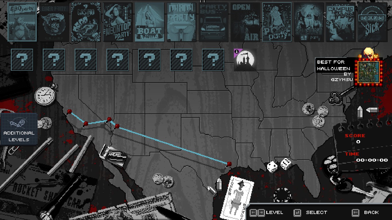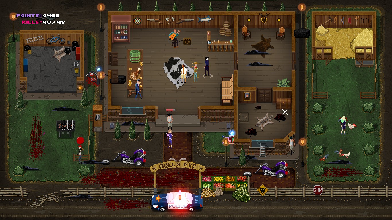 Every game has flaws and with Party Hard it’s mostly the repetetiveness of levels. While levels all are unique and quite fun when you first encounter them, there’s still a bit of a redundant aspect to clearing them after you used up the traps and items to clear most of the victims and now have to clean up with your knife. Quite often I got caught with only a few targets left and ended up getting really frustrated about it, as I had to restart again.