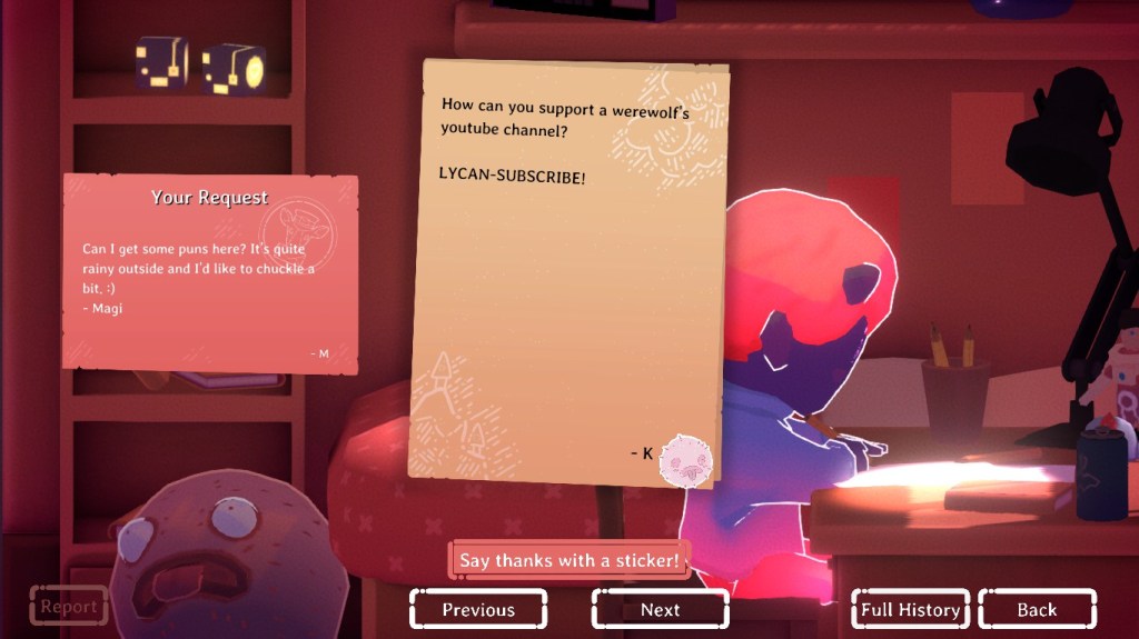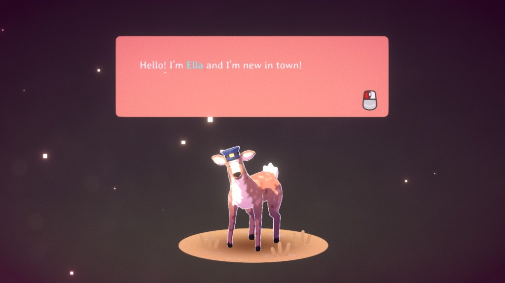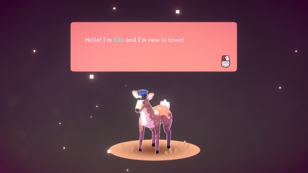 In the beginning, you’re talking to Ella the post-deer who’s quite shocked about you not knowing post-deers. She’s quite cute and delivers your paper planes, requests and answers to everyone in the world or the people who need them right now while also explaining features to you and notifying you when there’s a new answer in your inbox or when people thank you for your answers. She only just started this job, so you first need to send her a letter, which I immediately began with “Deer Ella,…”. I just couldn’t resist but she didn’t feel upset about it at all, I guess. She may have groaned, who knows. I just got her standard-NPC answer after that quick tutorial.