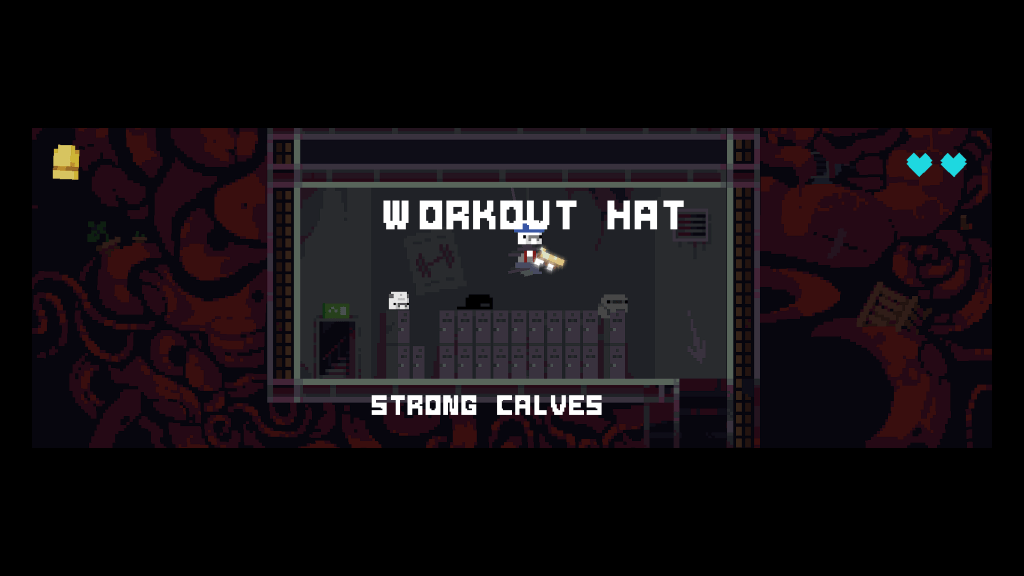 Overall, I didn’t get too far into the game yet. It’s mostly just this one frame away and I always get a bit too tilted when I play Gutwhale as I just am not really good at it. Regardless of that, I made it to the third area and nearly have beaten it… and I’ve unlocked new hats that unlock new modifiers for your gameplay like getting more points (that then can be spent on extra lives or extra bullets) but also only having one life or like replacing all enemies with frogs… or like having a high jump… and all of these hats and modifiers make the game not necessarily easier… they just change it up a bit keeping the difficulty and bringing something new to the table so that you can enjoy this finite rogue-like-experience for a ton of time.
