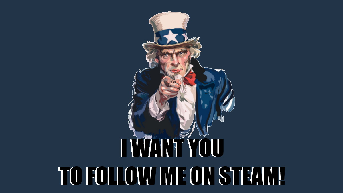 Now, this post was supposed to be a bit of a joke that is extremely over the top… so I hope it made you chuckle. I enjoyed trying this out and I’m quite chuffed with how it turned out. I still want you to follow me on Steam though! It’s free after all! But more importantly… Have a nice day!