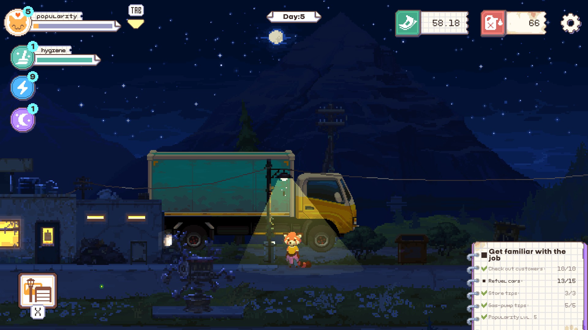 In a world where electric cars have spread very fast, you step into the role of an old gas station owner out in the wilderness. You clean up and decorate the place, fuel cars, stock up shelves, and just vibe mostly, while absolutely nothing weird happens at night, at all. A very cosy experience overall.