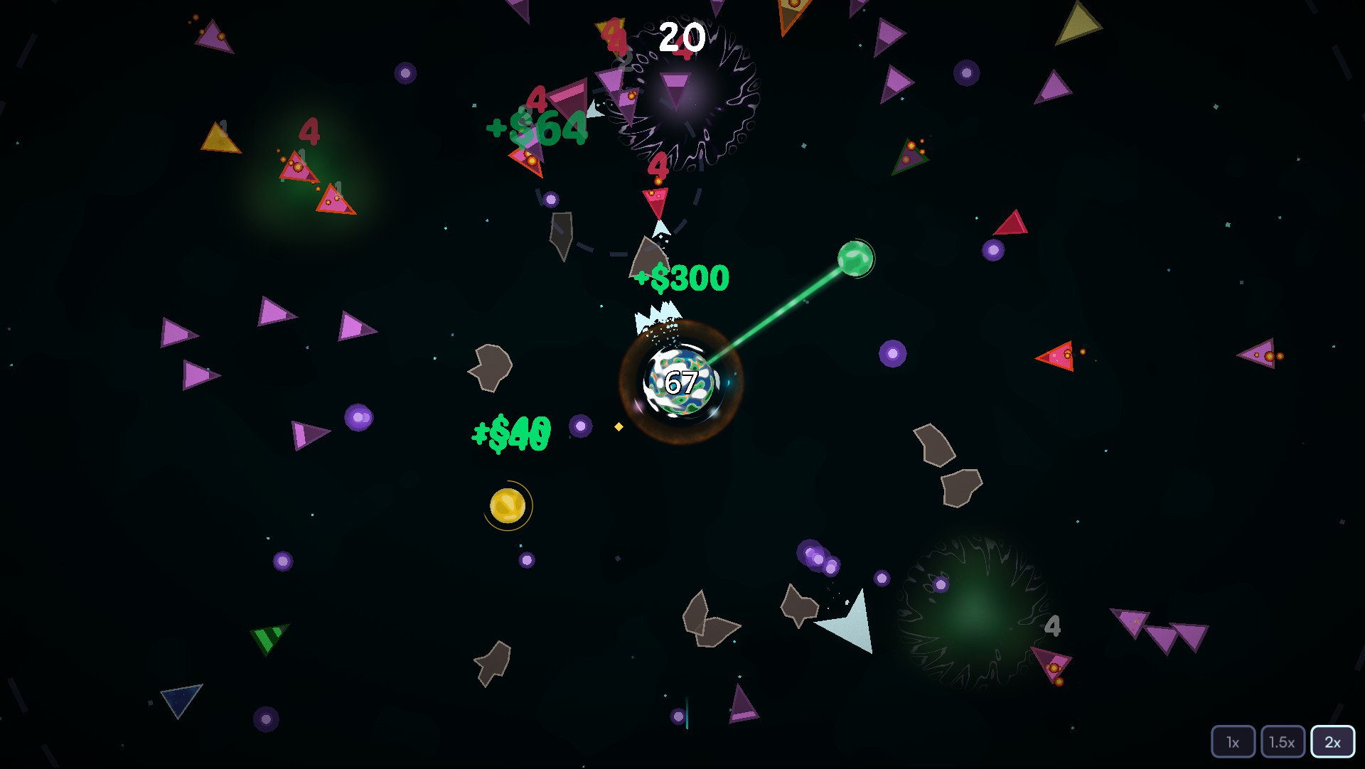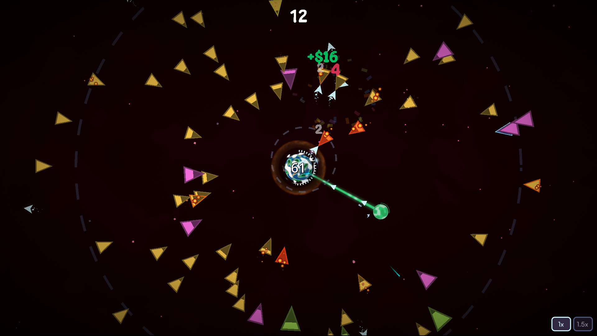 In Holding Pattern, you’re tasked with defending your galaxy from invaders. To do this, you hold your mouse over your home planet to create units, and then, when the invaders are in range, you hold onto them to launch units that will attack the invaders. It’s simple and very minimalistic.