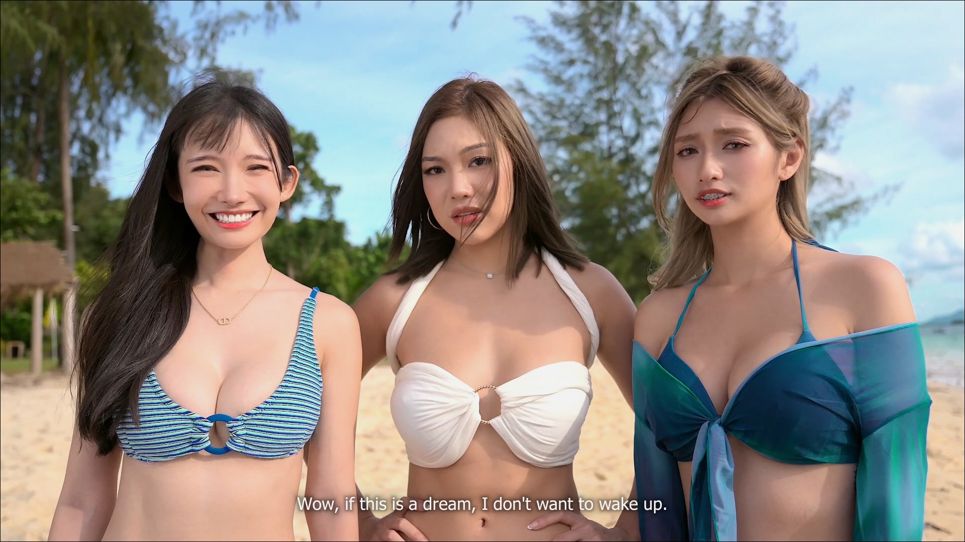 After a rough breakup, the protagonist of Island of Hearts gets isekai’d onto the titular island (filmed on the gorgeous scenery of Phuket), where they get to meet six attractive women that may or may not help him get over that heartbreak, grow as a person, and perhaps even find a new partner for life. This island is supposed to be a cure for the wounded and presents itself as a very tame version of Temptation Island, featuring a mansion where everyone lives together, alongside dreamy beaches and a lot of drama.